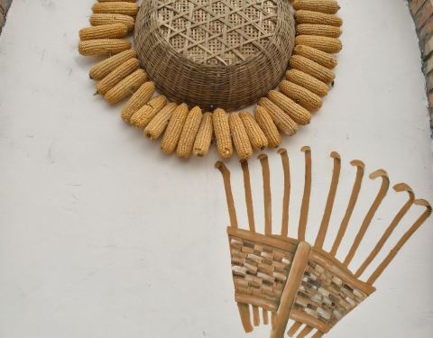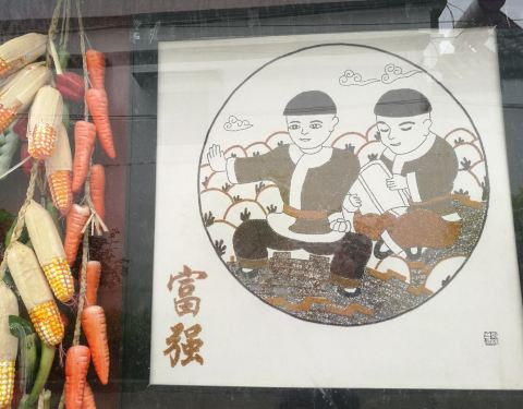 村里的墙壁上点缀着造型各异的粮食画作,据说粮画小镇是中国十大最美村庄