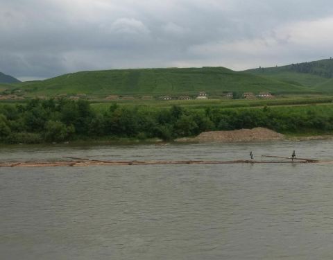 公园不错,凉爽怡人,对面就是朝鲜,地理位置比较特殊。行人也可以游船玩玩,100一位还是比较贵的,看到了朝鲜人在河中放排运木料,对面有人在淘金,有人在种地。