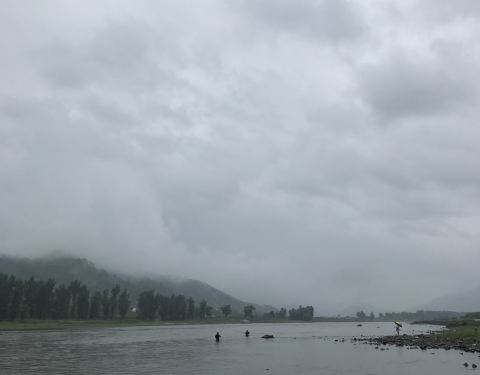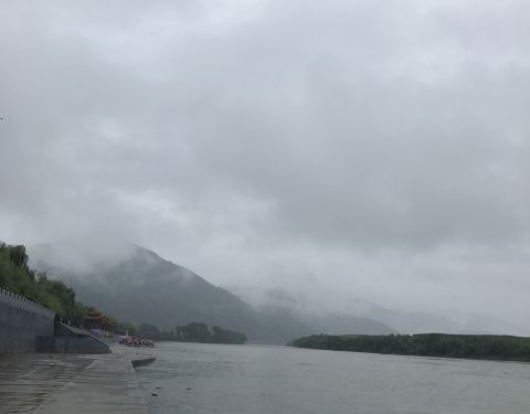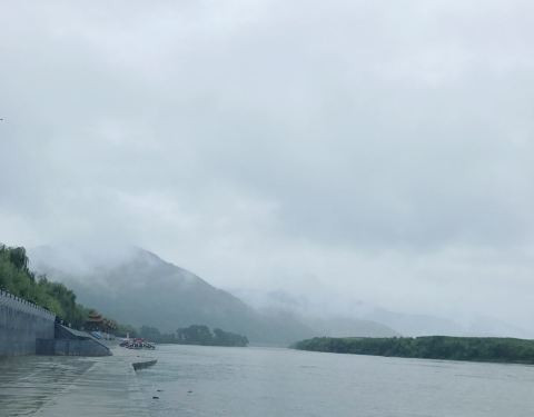 ...当地比较大的公园,因为对面就是朝鲜修建的,还挺漂亮的,觉得那天正好下雨,云雾缭绕的特别有感觉的