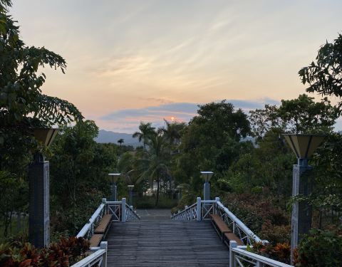 三亚抱龙森林公园,三亚制高点,看日出云海的好地方,堪比“尖峰岭”,是免费景区,配套设施完善,步行栈道一直通到山顶平台,路程一千米出头,坡度大,需要爬山一个半小时到两个小时最少,日出🌄6点慢慢开始,建议组队前往,目前比较冷门,半夜一个人好害怕😂最少带一瓶水,不要乱扔垃圾哦