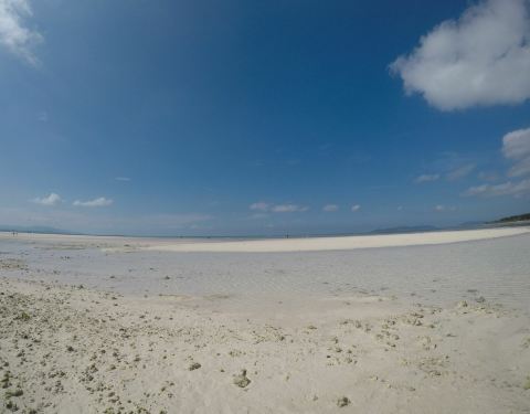 竹富岛最好的海滩之一,目之所及,一片海蓝延伸至天际。退潮时可以涉水徒步到海中的沙洲,别有一番趣味。海滩边有洗手间、更衣室及其他租赁设施,还有野餐区域。由于海浪比较平稳,很适合海水浴和浮浅。需要注意的是海参极多,注意脚下,别踩到。
