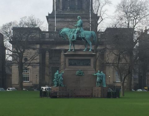 这尊令人印象深刻的骑术雕像坐落在夏洛特广场花园的中心,雕像是约翰·斯特尔爵士雕刻而成,是为纪念阿尔伯特亲王而设计的,三组较低的数字都是由不同的艺术家设计和雕刻的。