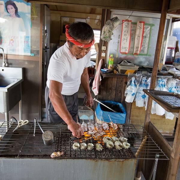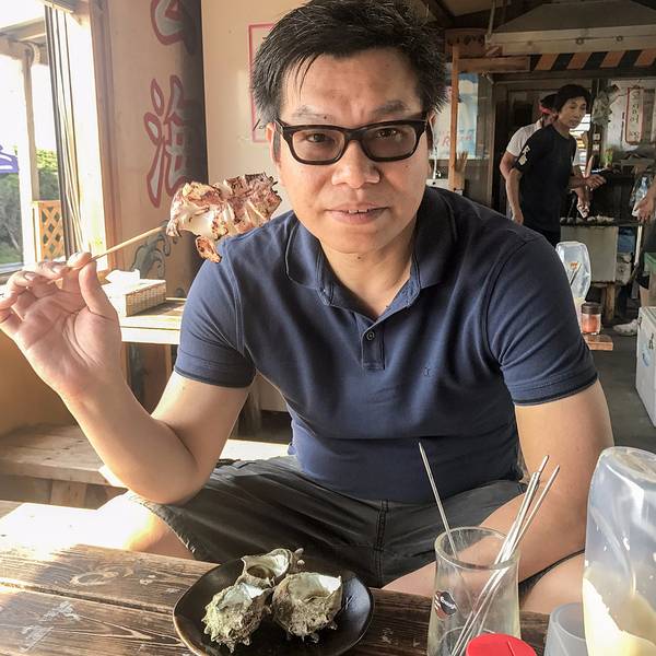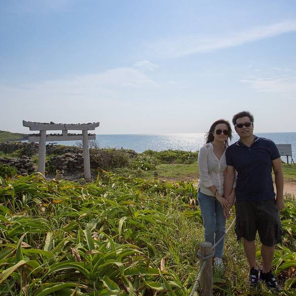 唐户市场一路向北,开一个半小时的车,到下关市的北部,就能到这里 — 角岛大桥。这里是《一生一定要去一次世界绝景》的第三位,日本第一位的景点。虽然这个地方没有车子的话很难到达,但是角岛是在日本最像画一样的地方。木村的“HERO(特别篇)”就是在这里拍摄的。 进入角岛,一定要经过这条最扣人心弦的角岛大桥。海天一色,特别低的桥墩,特别透明的海水就是这里的特点。在低低的桥上驾车会让你感觉到自己就像在海上漂移一样,这种感觉很少能在别的桥上遇到。我们慢慢开过角岛大桥,这段路大约2公里,但车子都开得很慢。我们把车窗全都打开了,沐浴着阵阵的海风,其实很爽,大桥的桥墩特别低,所以有在海上漂移的感觉。满眼的冰蓝海水和着阵阵海风,应该就是角岛大桥是死前必来的原因了角岛其实很小,就一条公路,沿着大桥一直开到底,有一个灯塔公园。停车后,一直往里面走,就是一个叫梦崎的地方,有着最奇特的海边鸟居。崎是日文,意思是很小的半岛。风景确实是很梦幻的,好像到了日本动画片中,刺眼的阳光打在海上反射出阵阵磷光。岸边还就我们两个人,为所欲为地照相。不远的沙滩,还找到一只小船,好像就是预备给游人用来照相的吧。走回停车场,旁边就是一家小餐厅,店主在烧着刚上水的角螺和鱿鱼。很简单的设施,就是原始的炭火加铁丝网,鱿鱼在火上烧得吱吱作响,香味扑面而来,我们又饿了这里角螺可是最新鲜的,三颗才500日元。烧好后,螺上面还有汁,喝了一口汁,好鲜甜啊,新鲜的大海味道!比“寿司大”好吃一百倍,还不用等,还很便宜。这才是旅行的精髓吧,找到可遇不可求的美味。当然还要赞扬这里的店主,他只供应两种食材,只用一种烹调方法,但餐桌上的调味料竟然有三种,很是讲究,有沙拉酱,五味粉,粗盐,各种口味的食客都能照顾到。这是对食材和客人的一丝不苟,我们能充分感受到日本人对事情的执着和细心啊。