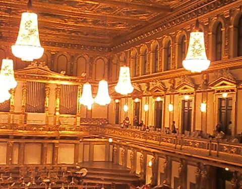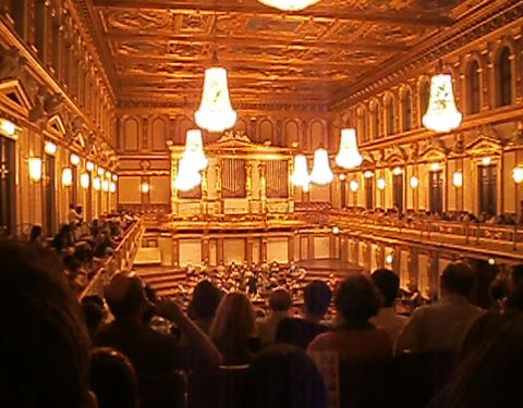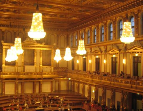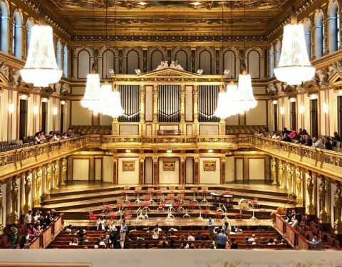 又称黄金厅、维也纳爱乐厅。这是维也纳最古老、最现代化的音乐厅,是维也纳也是世界上著名的音乐厅之一。设计宽敞明亮,高大威猛,金币辉煌。