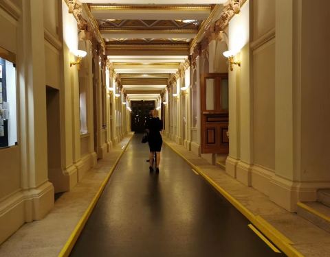 在12月31日参观了金色大厅。大厅里已经布置上了许多的鲜花,据说在新年音乐会的最后一天也就是1月1日,现场的观众们会在音乐会结束之后尽可能的带走许多的鲜花。英文解说的导游十分有激情,带我们了解了一些历史并参观了两个音乐厅和音乐家们彩排的地方,只有金色大厅是可以拍照的。