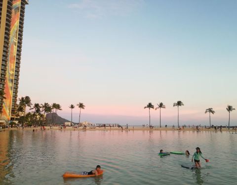 Kahanamoku Lagoon,卡哈纳莫库潟湖,在魔幻岛(Magic Island)和阿拉威船港(Ala Wai Boat Harbor)之间,位于夏威夷欧胡岛东南角的西南面海岸;其外开口朝向大海,浩瀚太平洋;其内通向阿拉威运河(Ala Wai Can...