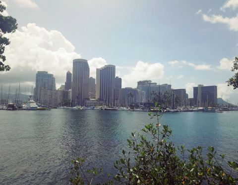 Kahanamoku Lagoon,卡哈纳莫库潟湖,在魔幻岛(Magic Island)和阿拉威船港(Ala Wai Boat Harbor)之间,位于夏威夷欧胡岛东南角的西南面海岸;其外开口朝向大海,浩瀚太平洋;其内通向阿拉威运河(Ala Wai Canal)。 欧胡岛檀香山市区最著名的是威基基区域和阿拉莫拉区域;阿拉威运河将二区分开,运河北为阿拉莫拉,运河南为威基基。 卡哈纳莫库潟湖,在阿拉威运河向着太平洋的西开口处,西邻魔幻岛,北邻阿拉莫拉公园小道(Ala Moana Park Dr),东邻阿拉威船港且与船港区水域完全联通并无清晰界限,而南面除了通往太平洋的开口,便是船港码头的三条码头栈桥。可见地理位置俱佳,风光这边独好。 卡哈纳莫库潟湖,并非杜克卡哈纳莫库潟湖(Duke Kahanamoku Lagoon)。 杜克卡哈纳莫库潟湖在卡哈纳莫库潟湖的东南,与卡哈纳莫库潟湖也就隔着阿拉威船台、停车场及潟湖沙滩。 杜克卡哈纳莫库潟湖是个真正的潟湖。 卡哈纳莫库潟湖是个向太平洋开怀的半潟湖。 半潟湖和潟湖之分,犹如半岛和岛之分。 面朝大海,四季如夏。