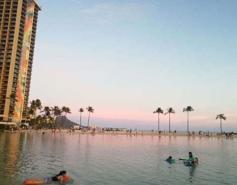 Duke Kahanamoku Lagoon,杜克卡哈纳莫库潟湖,其正式名称为:Duke Paoa Kahanamoku Lagoon,杜克帕亚卡哈纳莫库潟湖。 杜克卡哈纳莫库潟湖,位于夏威夷欧胡岛东南角的西南面海岸,在魔幻岛(Magic Island)、卡哈纳莫库潟湖(Kahanamoku Lagoon)、阿拉威船港(Ala Wai Boat Harbor)之东南;潟湖毗邻夏威夷希尔顿村,著名的彩虹楼(夏威夷希尔顿村之彩虹楼)即在潟湖之东北湖畔;潟湖的南面,即卡哈纳莫库海滩(Kahanamoku Beach)的西段,卡哈纳莫库海滩的东端又连着德鲁西堡海滩(Fort DeRussy Beach),原先是Fort DeRussy军事保护区,沿着海岸线再往东南散步,就是正宗的威基基海滩(Waikiki Beach);而卡哈纳莫库海滩的南面就是大海,通向浩瀚无垠的太平洋。 须注意,杜克卡哈纳莫库潟湖,并非卡哈纳莫库潟湖。 实际上,杜克卡哈纳莫库潟湖与卡哈纳莫库潟湖也就隔着阿拉威船港这片水域以及阿拉威船台、停车场及潟湖沙滩这片窄小的陆地。 当然,杜克卡哈纳莫库潟湖本身也不大,只是檀香山威基基区域里一个小型人造浅水池塘,绕着湖漫步一圈不过二十分钟。 泻湖是亨利·凯泽的夏威夷村开发项目的一部分,初建于二十世纪五十年代;一九六一年,希尔顿酒店收购了凯泽的夏威夷渡假村;二零零六,耗费约一千五百万美元翻修了潟湖,修了木板路、棕榈树、一个小岛。 可以在杜克卡哈纳莫库潟湖里游泳,一年四季适宜,只因夏威夷四季如夏,不冷不热,老少皆宜。 值得一提的是,每到周末,晚上在杜克卡哈纳莫库潟湖湖畔有焰火秀。 生命的类型各有千秋,有一种婉转浓淡如夏,另一种绚丽多姿如焰。