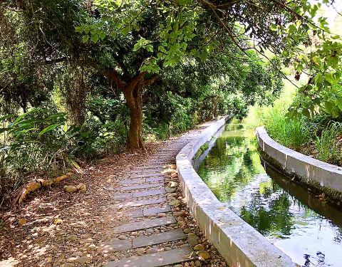 位在乌日的知高圳取源自筏子溪的溪水,用以灌溉台中南屯、乌日及大肚的农田,环顾四周则是绿树环绕,整体环境相当清幽,也因为有绿树的屏蔽,整个步道走起来相当清爽,不会被太阳晒得满头大汗,又有微风徐徐的吹拂,非常舒服。