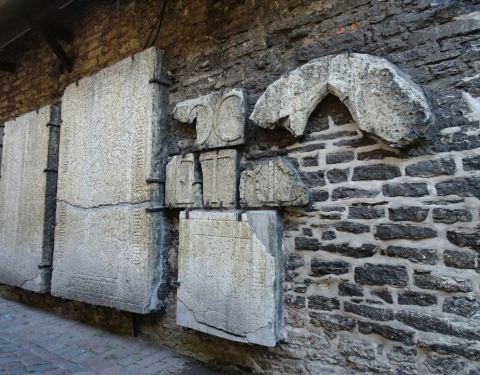通道离“爱沙尼亚之门”很近,进入后感觉很好,特别适合拍照。这里有一家披萨店,人气很旺,感觉不错,值得尝试。通道两侧还有纪念石碑,很有历史感。