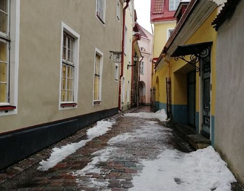 这里比较狭窄,而且有一些陡峭,街道是石板小路,穿过这街道可以到达塔林老城区的最高点看城区的景色