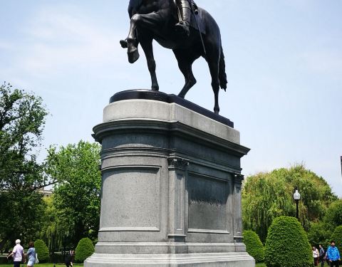 波士顿公园内的可看点不是太多,其中这一个雕塑应该说是它的亮点之一。华盛顿雕塑位于公园的一个入口处,雕塑看上去比较的壮观,通常游人在这儿聚集的也比较多。