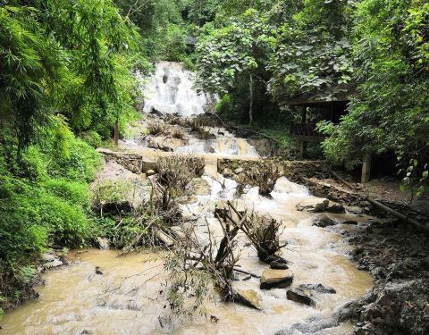 这是老挝当地的一个著名风景,叫做南迪瀑布,这里环境真的很美,给人的感觉非常舒服,景色漂亮极了。瀑布落差比较大,看起来非常壮观,很值得前来的一个地方。
