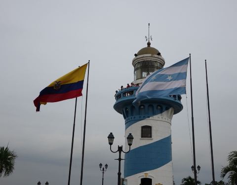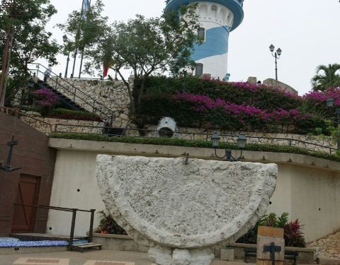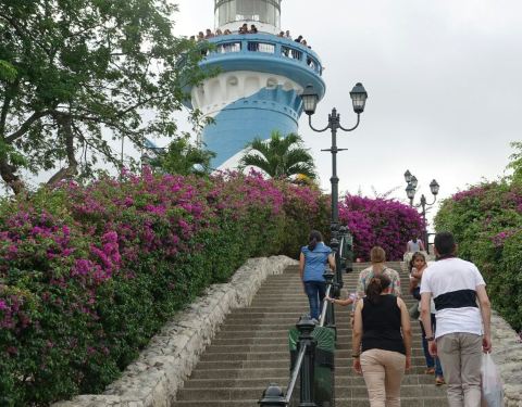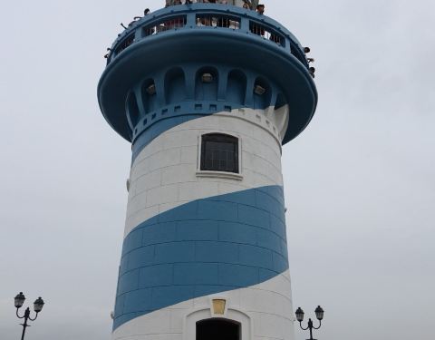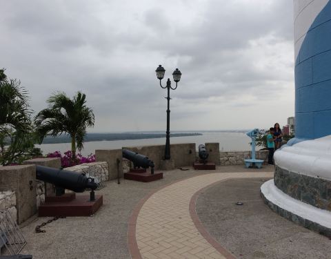 瓜亚基尔灯塔山是海边的一处高地,山上是著名的瓜亚基尔蓝色灯塔,这里原本也是防御工事,遗留有炮台,瞭望台等遗迹。灯塔非常的好看,蓝白相间的条纹,极富海洋特色,这里居高临下是眺望大西洋和瓜亚基尔城最好的地方。