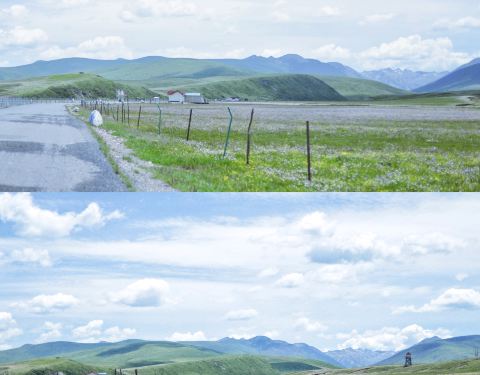 去年7月末去的,到的时候花快凋谢了,所以我们没进就在景区门口拍了几张照片,但蓝天非常美。路遇几个从若尔盖过来的游客,提醒我们一定不要选择露营,因为半夜会把你冷死。。。哈哈哈哈