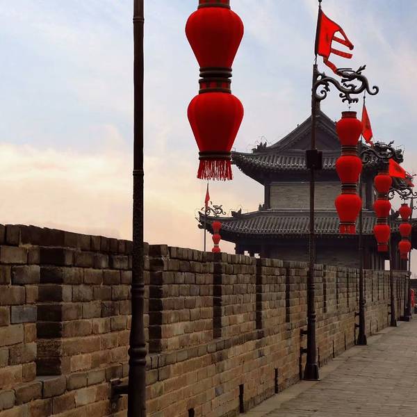 最后一个整天,我跟朋友去了西安古城墙(门票54元),这天特别冷,我一个东北人,穿着比我从东北来时候穿的还多的衣裳在西安瑟瑟发抖!这是我个人的感受哈,西安的气候、空气和大部分吃到的饮食我都不太能适应,明明我在沈阳吃到过特别好吃的biangbiang面,对西安充满了向往,这是咋个回事嘛! 如果空气好的话,在古城墙上往城墙里面看能看到很多仿古建筑,但遗憾的是空气不太好,雾蒙蒙的,加上马上过年了,到处都是安装到一半的彩灯,我去的时候很尴尬,处在一个没按完乱七八糟不伦不类的状态,很影响美感,大唐芙蓉园那时也是这个状态。 我跟朋友找到了缆车,八十块一个人,当时感觉有点贵,但是觉得还是坐一圈吧,来都来了。事实证明坐一圈还算值得,我俩谁都不会骑自行车(莫笑,山城人民一般都懂得不会骑车的原因),这一圈将近十四公里,自己走根本不可能走完。就是太冷,加上中途不能下车,下了车票就作废了,自己又没体力走回去,所以吹到我后脑勺疼(因为我是做的倒座,羽绒服没有帽子)!天气好的话穿一身帅气的汉服拍照,肯定特别飒!我是没赶上啊,可恶的雾霾!第二天就该回去了,按理说我们应该去买点土特产带回家给亲戚朋友,但是...我俩真的啥都没看到好吃的,我就买了点石子馍和茯茶送人,就回宾馆躺着了。