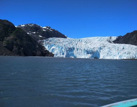确实很壮观,在海峡里看整个冰川,会发现几百年里,人类活动对全球气候造成的影响使冰川线后退了几公里,尤其是最近几年,冰川后退速度加快了