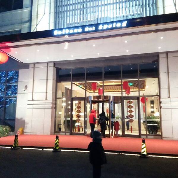 第一次来体验,感觉非常好,服务热情,环境好,温泉是在室外,现在的天气,感觉有点冷,但是披上大浴巾,冲出去,赶紧跳进温泉池里马上就暖和了,水温感觉有四十多度吧,刚进去略感有点热,人也不多,挺好的,只...