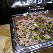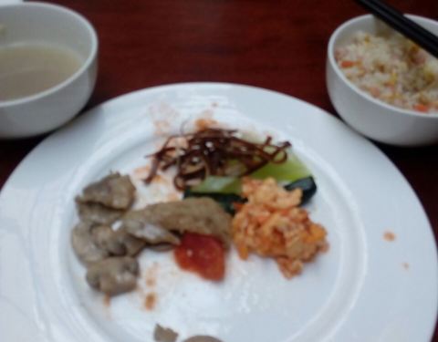 午饭和晚饭的档次差不多,餐费也是一样的,有十几个热菜,七八个凉菜,还有两种水果,生吃的黄瓜圣女果,萝卜等,总之吃饱,吃好没有问题,只是没有那么奢华。吃饭的地方不是很大,人多时要提前占位子,来晚了要等位。