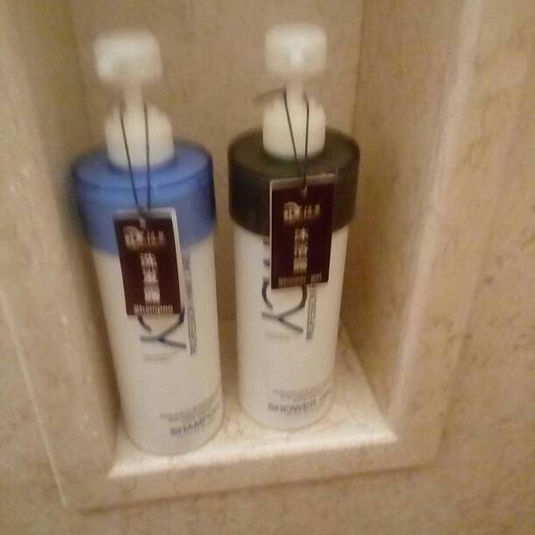 洗浴用品都有标识,挂牌有汉字,注明是洗发液,还是浴液,护发素,挺细心的,我喜欢。