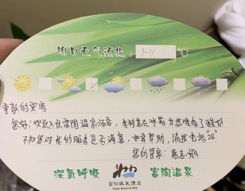 开了很久,但是非常值得去的度假酒店。温泉在竹林间,就是天气太冷了,不是所有池子都开放了。很满意开了很久,但是非常值得去的度假酒店。酒店服务很好,很贴心,早餐很丰富。还送了酸奶,手写的爱心卡。回家的时候还给我们洗了车,服务特别周到。温泉在竹林间,就是天气太冷了,不是所有池子都开放了。还有很多...开了很久,但是非常值得去的度假酒店。酒店服务很好,很贴心,早餐很丰富。还送了酸奶,手写的爱心卡。回家的时候还给我们洗了车,服务特别周到。温泉在竹林间,就是天气太冷了,不是所有池子都开放了。还有很多在装修。还好人不是很多,不需要大家挤在一块。很满意。 展开
