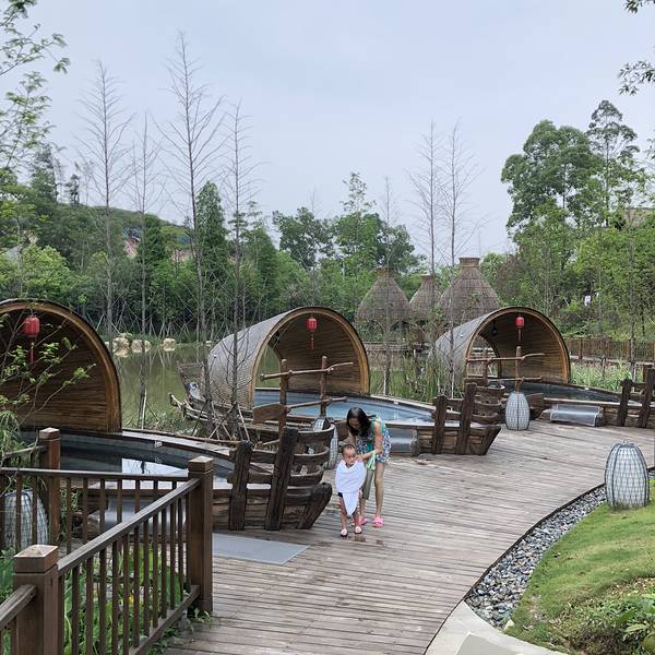 这里是一个度假区,除了温泉,还有小镇,还有庄园。先说说温泉本身,人比较多,有几个池装修成船的模样小孩喜欢,但配套不够人性化,比如干毛巾不是每个池边都有,电瓶车15分钟才一班。再说说小镇,不算大,一小...