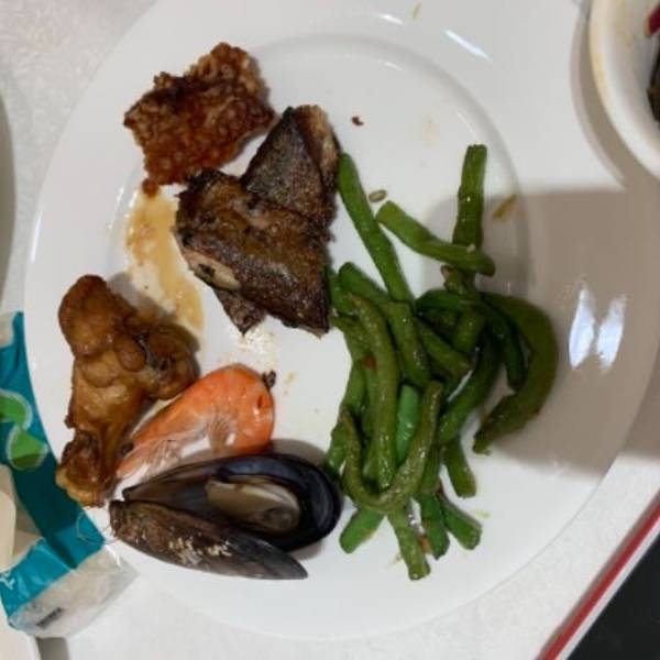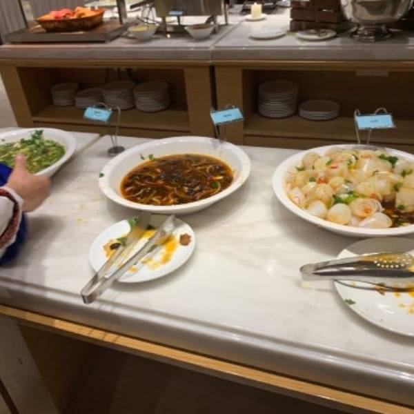 答应我!千万不要买自助餐套票!第一次见识这样的酒店自助餐,没有刺身、鸡扒、虾都要抢,基本每个人都是吃白饭加菜,或者汤粉,而且整个取餐环境乱七八糟,像快餐店。人均一百去附近农庄吃多好啊!我第二天中午,四大一小去农庄吃一只鸡一条鱼打边炉,才198!