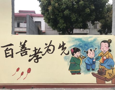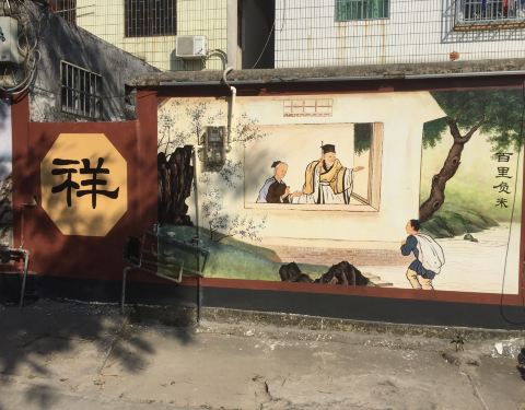 一条小村落,但由于每家房子的外墙都刷上不同的成语故事或做人道理,所以成为县城内的景点。其实房子的外墙保持得宜,颜色没有剥落,慢慢参观也颇有趣味。