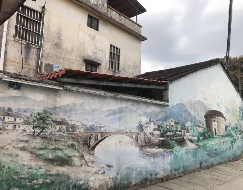村子不是那种纯古色古香的建筑,但总能在某段路上发现特点,古桥、百年大树、匠心打造的墙绘,桥边好客的小店掌柜,让人充满安全感