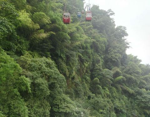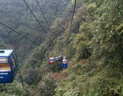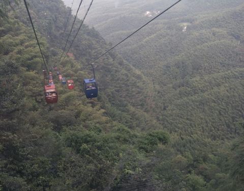 ...掠过,索道很长,但是有点小,每个索道车只能坐二人,沿途可以看见奇树,竹林,瀑布,值得一看的地方单程50,双程75,从竹海上掠过,索道很长,但是有点小,每个索道车只能坐二人,沿途可以看见奇树,竹林,瀑布,值得一看的地方。