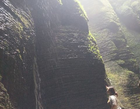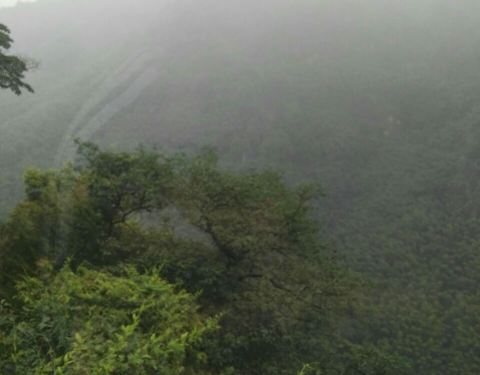 从缆车上就能看见悬崖峭壁上凿刻出来的建筑古寨,很奇特令我有点小兴奋。另一条是穿行竹海的