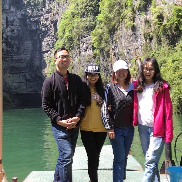 卯洞风景区目前可以划船,也可以包船(好像一条船200元,很大的船带你游一小时),周边风景秀丽,岸边有茶田、森林、悬棺、溶洞,还有伏流河穿过形成的洞穴。卯洞风光客路青山外,行舟绿水前 水光潋滟晴方好,今日适合去卯洞行舟绿水前这个就是卯洞了,上面还有行车道路,是很奇特的环形壁。卯洞在县城里请了一个当地的司机,还教我们跳摆手舞,土家妹子的歌声非常嘹亮。出行小分队