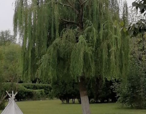 叶子开始绿了,孩子们多了,来玩吧。假山就别爬了。