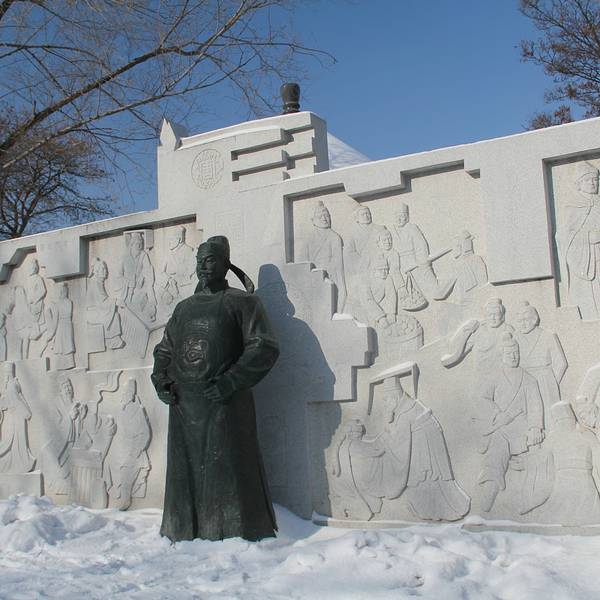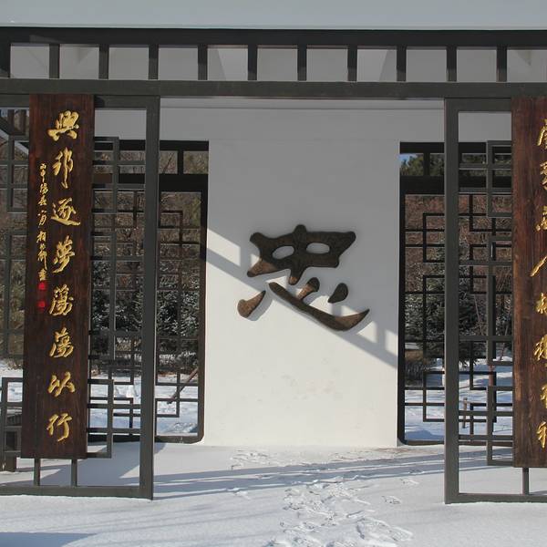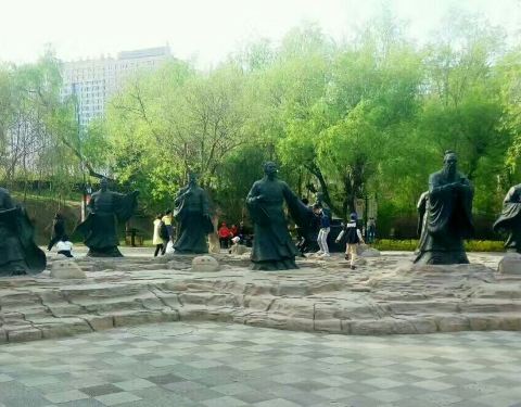 内修建了“忠“、“义”、“礼”、“智”、“仁”、“孝”......,好像有八个亭阁楼牌,每个楼阁的楹联非常有韵味,还有古代流传的经典故事的碑石和塑像,仔细的读起来很有教育意义,"赵氏孤儿"、"苏武牧羊"、"李世民仁爱治国",从远处看去塑像非常的逼真,充分体现了健康文化主题公园的特点。