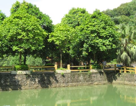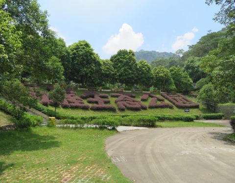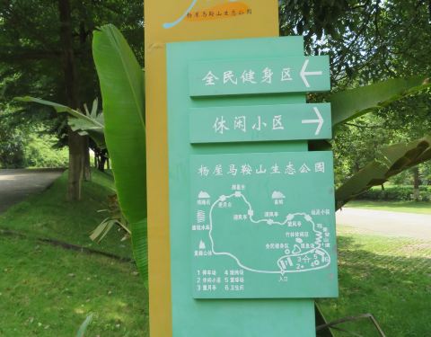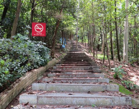 整个公园不是很大,大概有几个山头吧,最高处也就海拔200M到300M,全免费的类型,里面除了两个管理人员很少看得到人,进去之前最好在附近街上带些水及零食。进门处是停车场厕所及一些健身设施,上一个台阶有一个水池及竹林,可以休闲座座聊天避暑,有健身设施可以玩玩,然后就是登山道入口,游览图上好像是可以绕一大圈不重复回来的,但实际是沿着登山道登上顶峰插红旗处,再往前走200米有个观景台,可以看对面长安莲花山顶及大岭山附近道路街景水库等,然后必须原路返回,没找到任何岔道。中途林荫遮日,山风习习,是个避暑休闲佳地,但蚊虫特多只要停步马上就成为蚊子聚餐目标,不敢多停。周末爬爬山健身休闲确实不错。