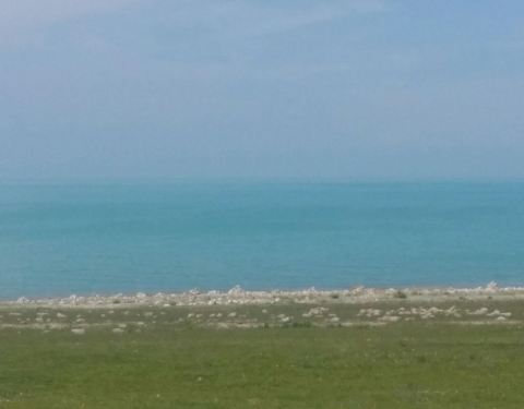 一个真的很干净能让心灵净化的地方,湖水干净明亮,草原青青葱辽阔无边无际的,牛羊成群结伙的在一起...