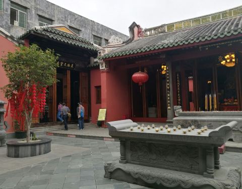 位于海口骑楼老街中山路步行街路段,免费,上香也行,逛逛也行。