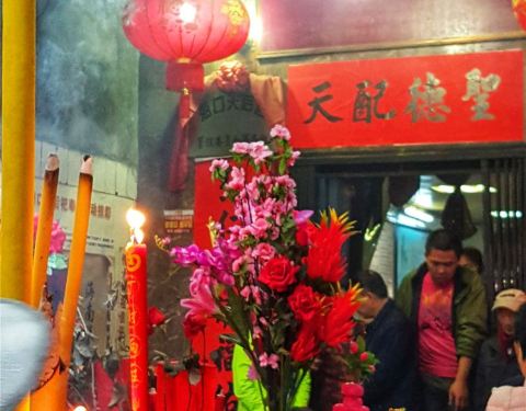 但这天非常热闹,好像在做什么祭拜活动,香火很旺,有一个供台上放满了供品,那些供品也很有观赏感的...
