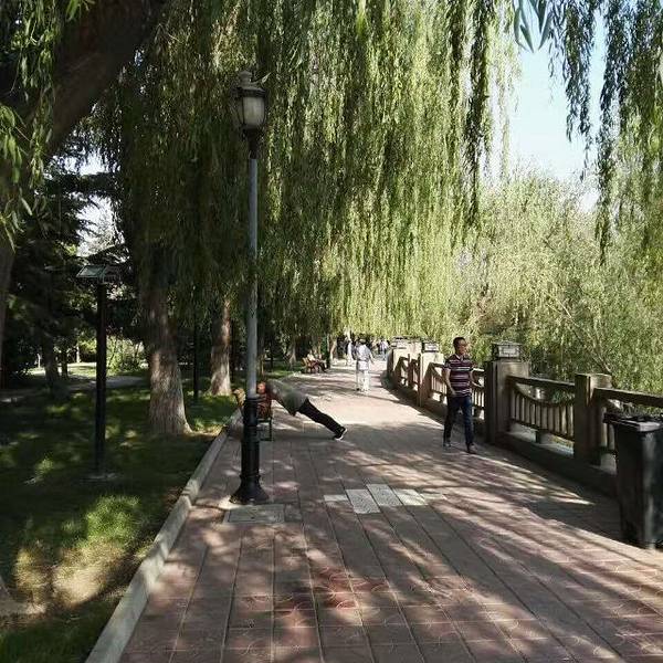 巴彦淖尔很小,湿地公园也就显得很近了,旁边可以免费停车,河两岸一边是儿童乐园,一边是河套文化展示区,有个模拟的水闸很有意思哦