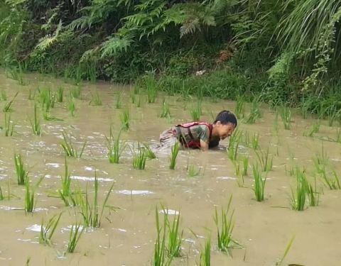 9月的乡愁,太阳还是这么热,只是风不再柔和。沿着主入口进入景区,一路繁花,几处乡愁。走到石桥夜雨,一眼望去,满是稻穗的绿色波浪,随风波动。