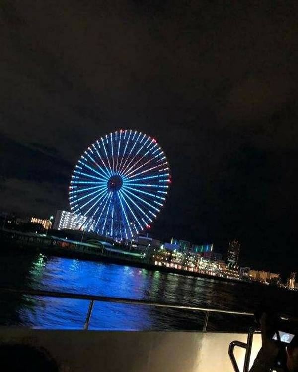 在船上拍了海游馆和摩天轮的照片,夕阳中超美的,一定要亲自去欣赏圣玛利亚号会绕着大阪港转一圈,大概40分钟,景色开阔,只是我没预想到海风那么冷,把我冻得凌乱了都。在船上拍了海游馆和摩天轮的照片,夕阳中超美的,一定要亲自去欣赏。