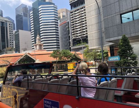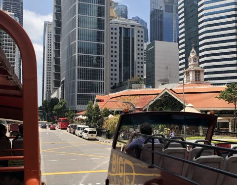 新加坡Citytours敞篷观光巴士涵盖 2 条观光路线,共 40 个景点。巴士上播放景点介绍,让您自由探索新加坡。 城市各处都有许多便捷的车站,可以游览所有经典景点。 漫步牛车水、甘榜格南街(阿拉伯街中心),新加坡和小印度,探索新加坡丰富的民族、文化和历史遗产。宁静典雅的花园和现代化的摩天大楼、现代化的商场带来强烈的视觉冲击。新加坡的开国元勋史丹福·莱佛士爵士的铜像矗立在维多利亚剧院外,引人注目。 △ 各个角度欣赏美景 △