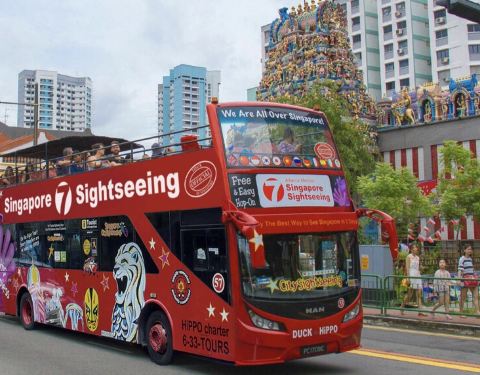 乘坐随上随下观光巴士环游充满活力的岛城新加坡。