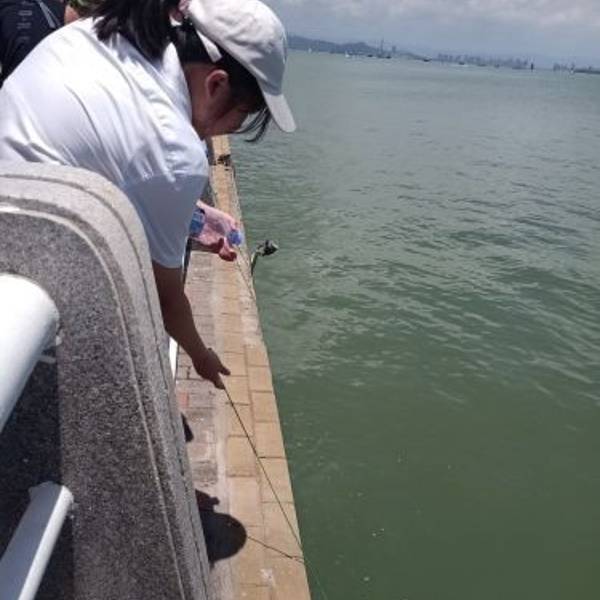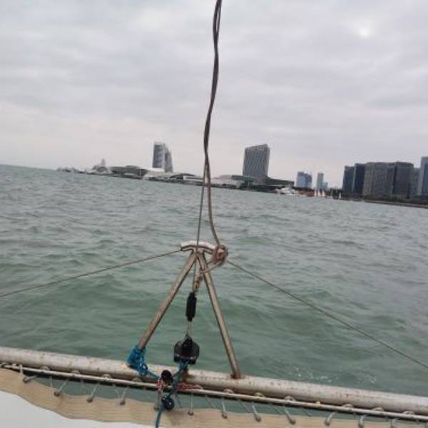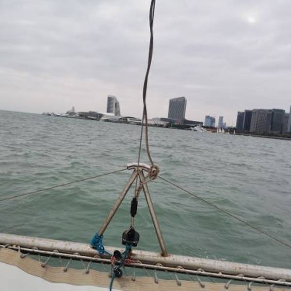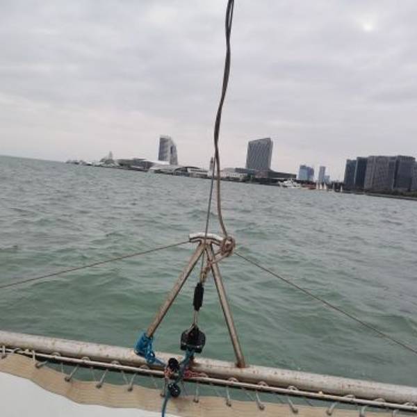 他们有专车接送,挺方便的,工作人员服务态度非常好。车子开到了码头,就看到他们公司好多游艇帆船整齐的停泊在码头上,他们也有接婚纱摄影的新人来拍摄。因为我们是坐帆船,在候船区等候了五分钟左右,航班开始,工作人员带领我们有序的登船,因为有边防站点,所以大家要记得带身份证才能坐船。未满13周岁的小孩不用身份证,超过但不满16周岁需要户口本(有身份证也可以)。上船前要穿救生衣,船上工作人员也很热情,耐心讲解周边的风景,幽默风趣,一路有说有笑。在海上风很大,船长驾驶技术娴熟,船速8节,因为是夏天,有人提议玩湿身,大家更加跃跃欲试,船长让大家做好,手抓好栏杆,把前帆升起,主帆打直,在那边熟练的调整绳子,船帆吃风,船身一下就倾斜一边,大家开始欢呼尖叫。船长讲解说大家不必担心,帆船是海上的”不倒翁“,船重心很低,不会倾覆。平时我们是在岸边看大海,在海上看陆地又是另一番美景。具体路线是:五缘湾码头港→五缘湾大桥→眺望鳄鱼岛→眺望对金门小三通码头→眺望五通灯塔→眺望大金门→返航。一次旅行,一次心情;一次旅行,一次蜕变。帆船出海,下次还是找这家。