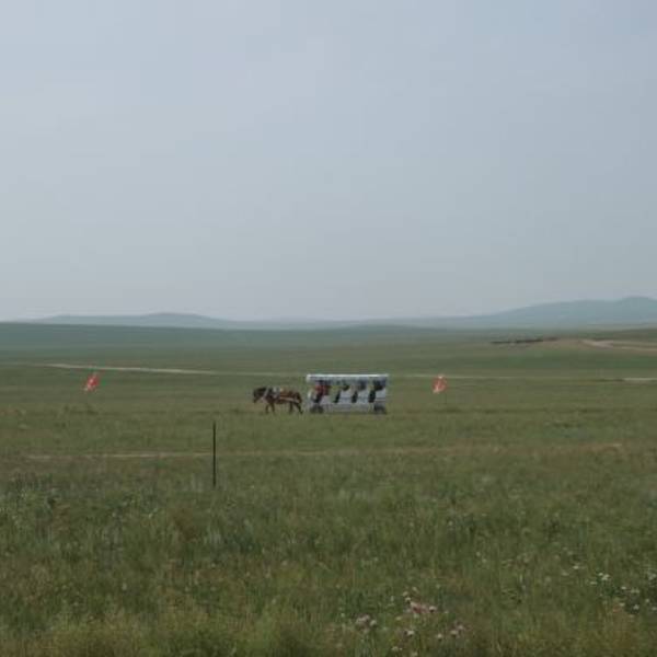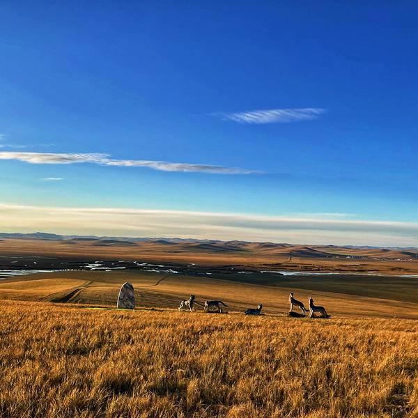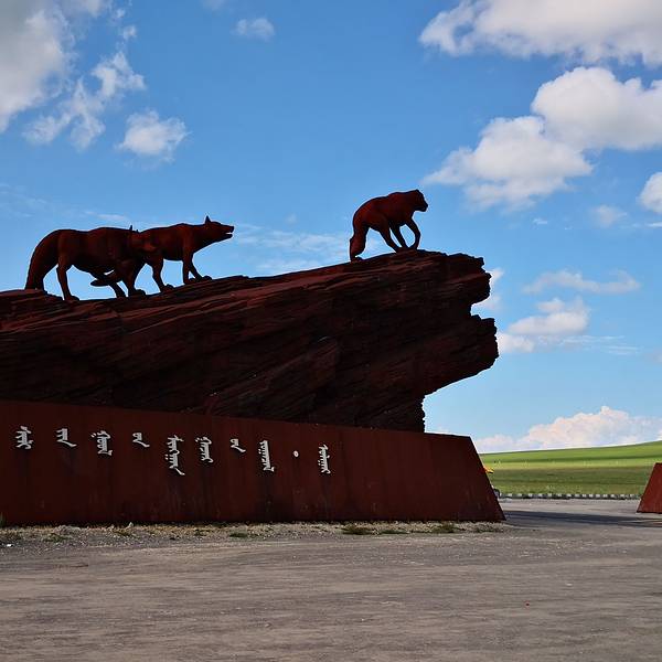 在去霍林郭勒的路上,我们看到一组宏大的雕塑——五匹狼。乌拉盖曾是电影《狼图腾》的取景拍摄地,狼也就成为旅游标志物的雕塑主体了。这组雕塑也许想告诉游客,这里就是千里草原风景大道的起点吧!雕塑——狼图腾 展开