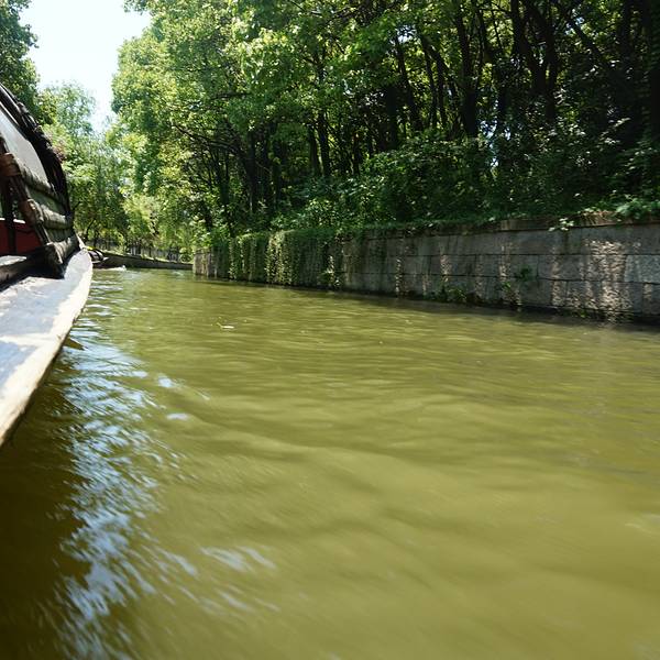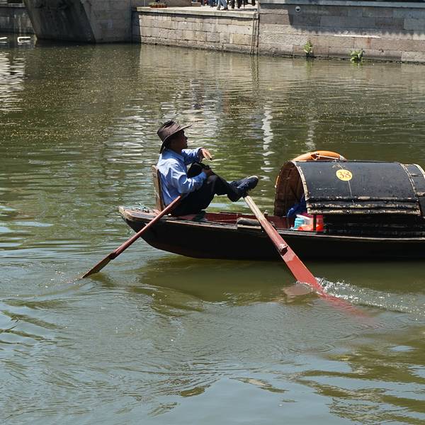 乌篷船是绍兴的特色交通工具,在柯岩景区内,乘坐乌篷船游览也是一个不错的选择,乌篷船鲁镇景区的码头位于双面戏台的左侧,可现场购票,票价为60元/人,一船可坐3人,也就是一船180元,如果在途牛上提前购买的话,只需要100元,便宜了很多,有小孩的话可以勉强到4人,乘船的时候需要穿上救生衣。乌篷船的船家都是老师傅,手脚并用,这也是门技术活,这里的船家很多都是从小都开始撑船的。乘坐乌篷船在鲁镇景区内的线路很简单,就是围绕着岸边景点走一圈,在前行的过程中,船家也会介绍各个小景点,这些景点都是鲁迅笔下刻画出来的。