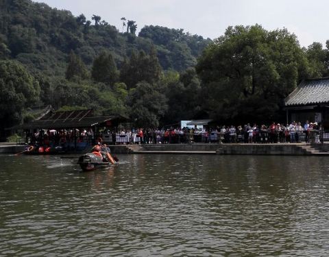 ...而是在绍兴东湖景区内坐的,柯岩风景区内的乌篷船,船夫们划的飞快,沿着河边一个挨着一个,很有意思在柯岩景区没有坐乌篷船,而是在绍兴东湖景区内坐的,柯岩风景区内的乌篷船,船夫们划的飞快,沿着河边一个挨着一个,很有意思。