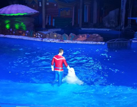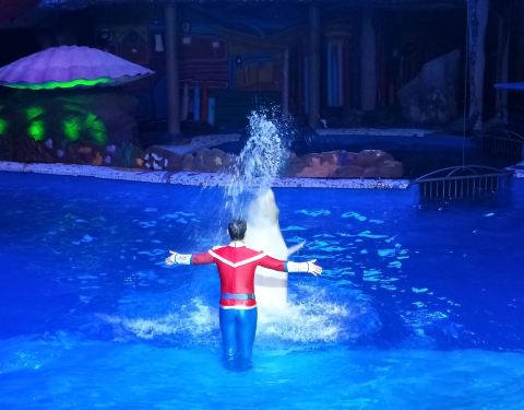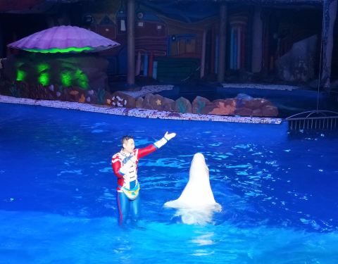 海豚精彩的出场赢得游客阵阵掌声,海豚是一种非常可爱的动物,在全世界都极受欢迎海豚是人类的好朋友,特别是在大海中,这一场演出就是演绎感人的故事,饰演美人鱼的演员还是一位国外美女。白鲸在驯养员的指挥下,与人完美配合互动,整场演出大约持续20分钟,情节跌宕起伏。王子和美人鱼在海中...海豚是人类的好朋友,特别是在大海中,这一场演出就是演绎感人的故事,饰演美人鱼的演员还是一位国外美女。白鲸在驯养员的指挥下,与人完美配合互动,整场演出大约持续20分钟,情节跌宕起伏。王子和美人鱼在海中遭遇海盗,最后幸好有月光天使相助脱险,场景浪漫而又唯美。海豚精彩的出场赢得游客阵阵掌声,海豚是一种非常可爱的动物,在全世界都极受欢迎。 展开