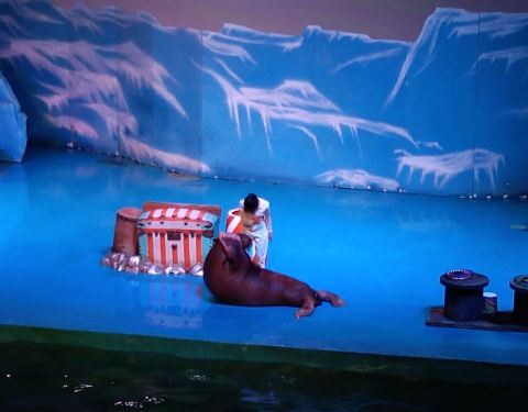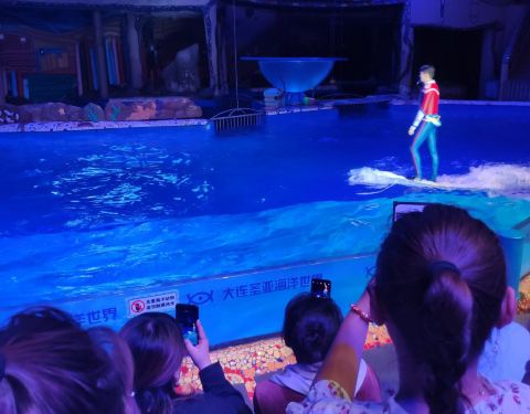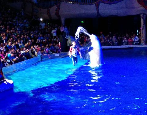 ...的一个表演,全程大概20分钟左右,先是白鲸表演,然后是海豚表演,几乎场场爆满,特别是夏天的时候很有意思的一个表演,全程大概20分钟左右,先是白鲸表演,然后是海豚表演,几乎场场爆满,特别是夏天的时候。看表演一定要提早找个好位置。