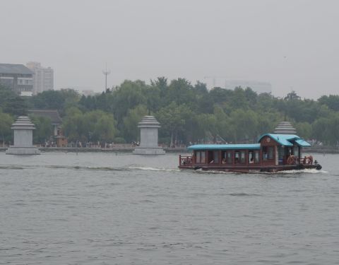 ...的,我们每次带外地游客来泉城游,都要坐坐船,在湖里转转,迎着微风正好看看风景,体会一下优美风景